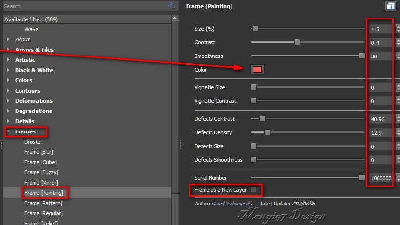 Effects / Plugins / GMIC/GMIC_QT/Frames / Frame Painting - color #f65857